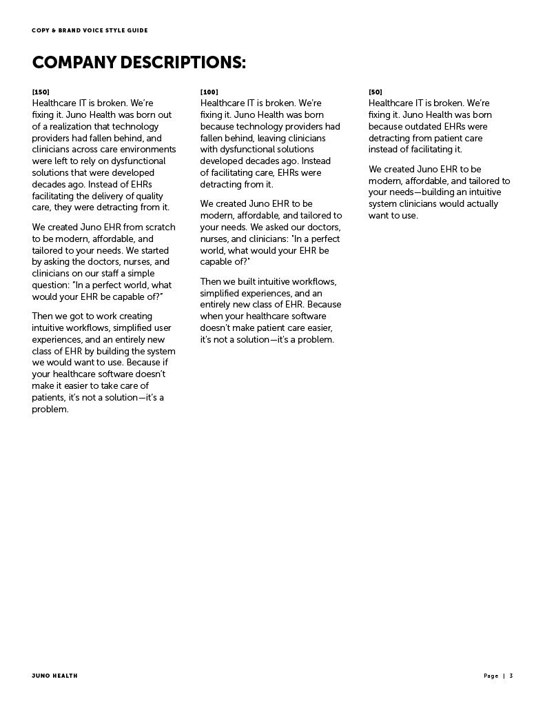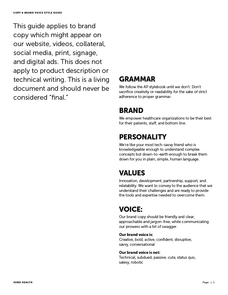 Juno Health Copy and Brand Voice Style Guide